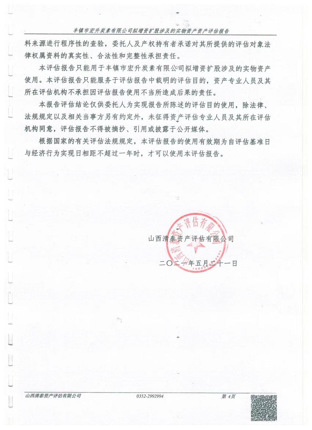 豐鎮市宏升炭素有限公司擬增資擴股涉及的實物資產資產評估報告